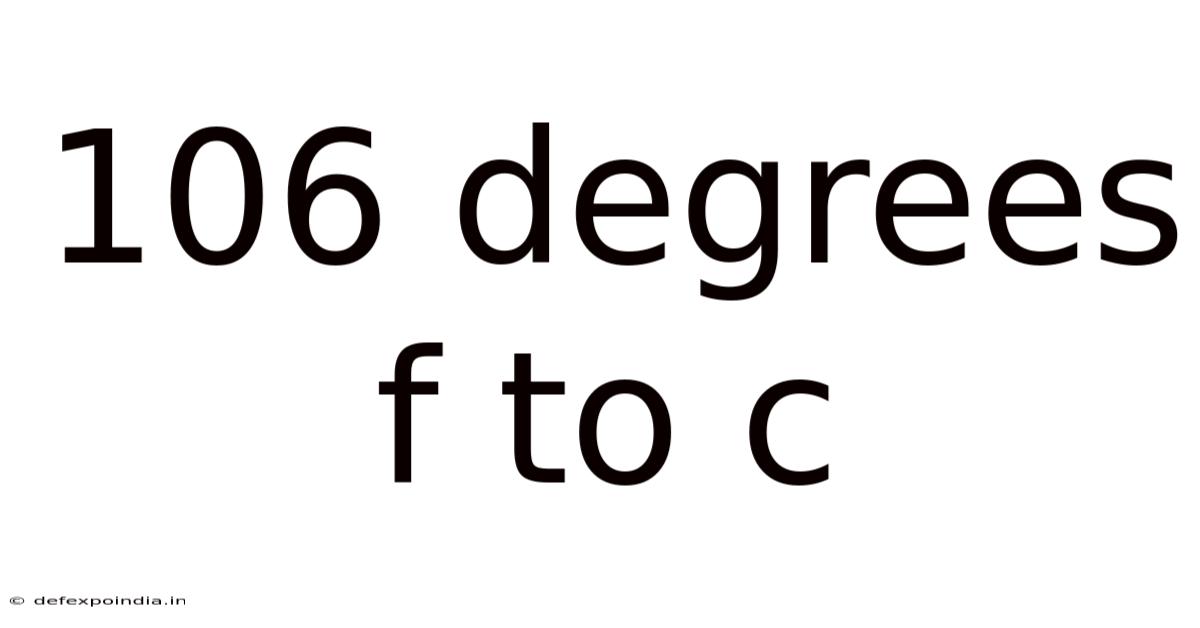 Are you wondering how to convert 106 degrees Fahrenheit (°F) to Celsius (°C)? On top of that, this seemingly simple conversion is crucial in various fields, from cooking and medicine to meteorology and engineering. Practically speaking, understanding the process isn't just about plugging numbers into a formula; it's about grasping the fundamental difference between the two temperature scales and appreciating the practical implications of this conversion. This thorough look will not only show you how to convert 106°F to °C but also look at the underlying principles, offer practical applications, and address frequently asked questions Worth knowing..